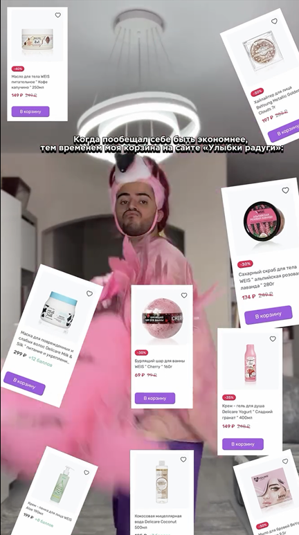 - Разработаны креативные сценарии с использованием костюмов и атрибутики Фламинго Крис для получения эффекта виральности и формирования яркой эмоциональной связи ЦА с брендом.